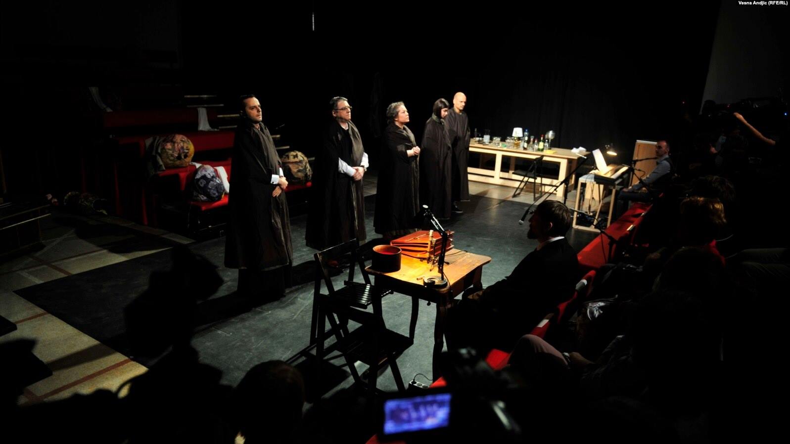 I u tom trenutku kao bumerang vrati mi se natpis sa početka predstave u kome se navodi da uprkos tome što su uglavnom osuđeni izvršioci, organizatori i naručioci genocida u Srebrenici, akademici, pesnici i duhovnici ovog zločina i danas su najugledniji ljudi u našem društvu, te da bi upravo oni morali biti javno prozvani i kažnjeni, kako bi pravedni ljudi mogli da žive ponosno i dostojanstveno. I da, ova predstava bavi se upravo njima – kulturnom i pozorišnom elitom Srbije.