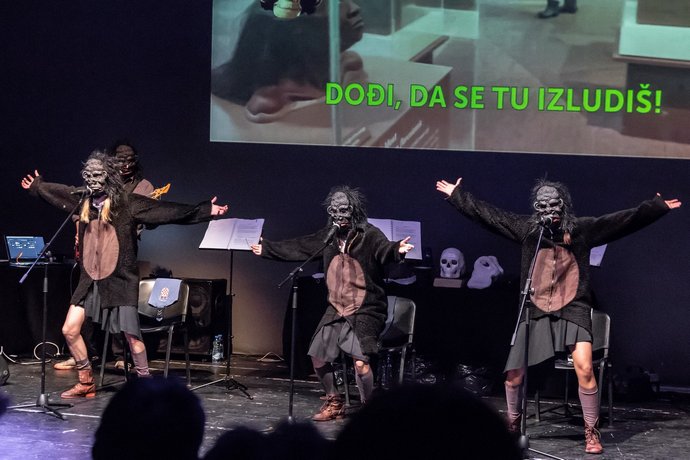 Dodaje da smo svedoci da se pojedina dešavanja i ličnosti ciklično ponavljaju što ukazuje na to da je ova predstava bila nužna. Ipak, sve poruke koju predstava nosi ne bi bile toliko snažne bez maestralne izvedbe tri glumice – Isidore Simijonović, Nine Nešković i Jelene Graovac. One svojom energijom, sjajnom koreografijom, ali i glasovno i mimikom ilustruju sve pošasti savremenog društva. Kako kažu, upravo zbog toga što je predstava nastala kroz improvizacije na zadatu temu i što se njena priprema dešavala u fazama u kojima su bile u mogućnosti da oslobode sve ono što im se krije u podsveti dovelo je do ovakve interpretacije. Osim toga, na pitanje koje se često postavlja o ulozi pozorišta i njegovoj angažovanosti, veruju da svako pozorište to jeste jer ima zadatak da probudi nešto u publici.