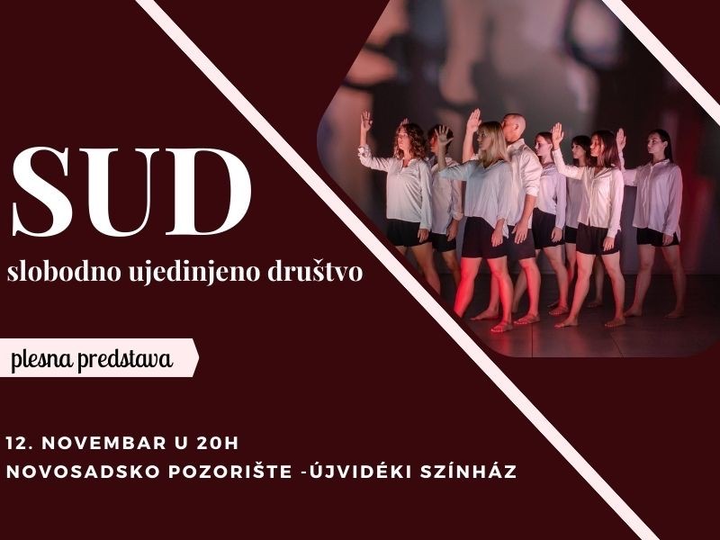 Savremena plesna predstava „Sud - Slobodno ujedinjeno društvo” bavi se pitanjem diskriminacije, istražuje polazište predrasuda i stereotipa. Kroz teme rodne ravnopravnosti, vršnjačkog nasilja, femicida i diskriminacije, plesači nas uvode u jedan svet realnosti, protiv koje odluče da se bore ne bi li napravili idealno solidarno društvo.