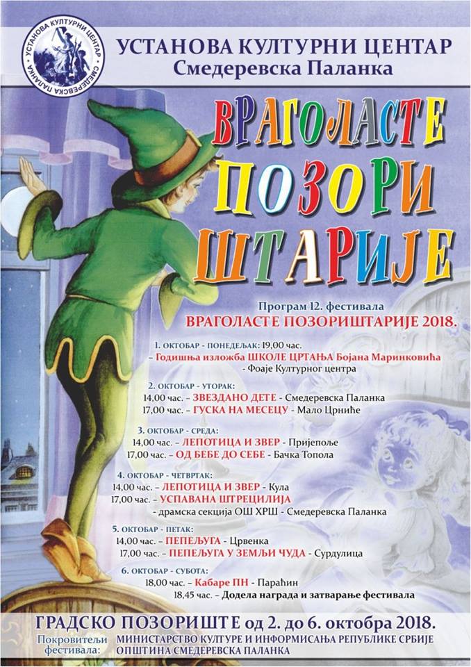 Festival Vragolaste pozorištarije je odlično prihvaćen od strane publike, pa tokom četiri do sedam dana, koliko prosečno traje, pozorišna sala Kulturnog centra uvek je ispunjena do poslednjeg mesta. I ove godine festival je organizovan pod pokroviteljstvom Ministarstva kulture i informisanja Republike Srbije i Opštine Smederevska Palnka,a održava se dvanaesti put.