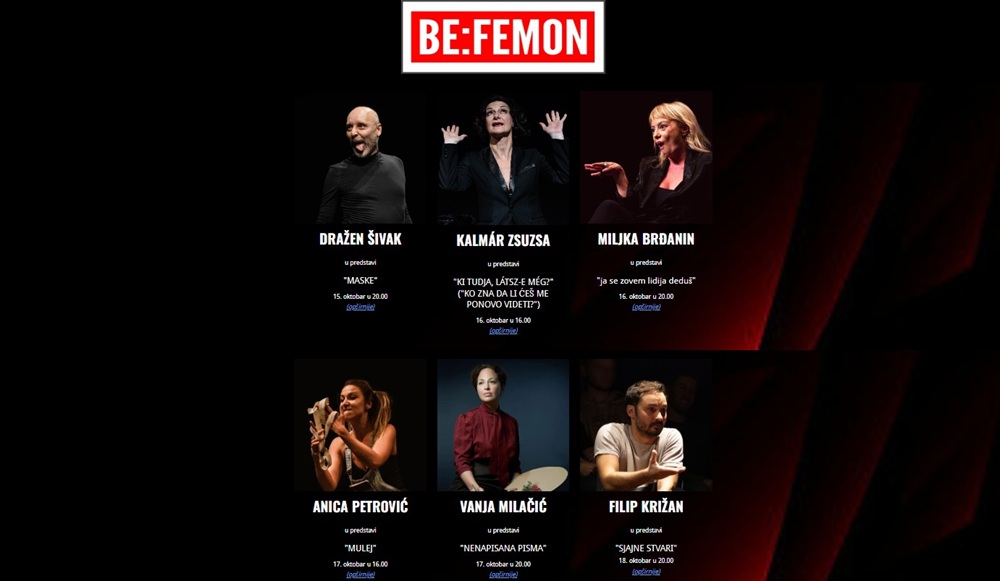 Trinaesto izdanje festivala monodrame i monokomedije Be:femon održaće se od 15. do 18. oktobra 2025. godine u Bečeju, a publiku očekuje šest autorskih i savremenih izvođenja domaćih i regionalnih umetnika.