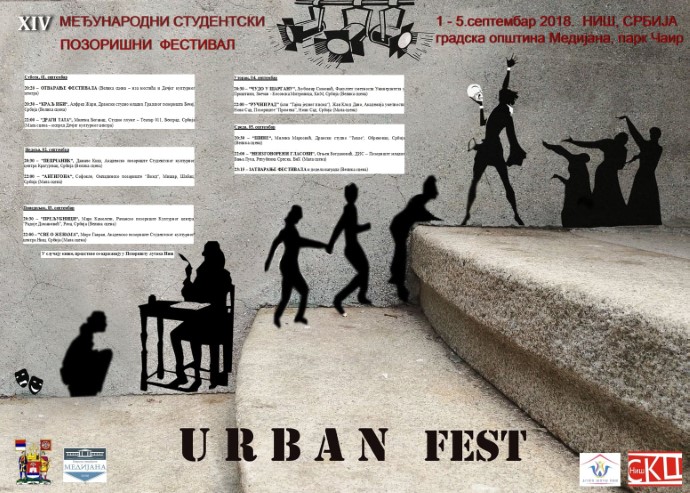 U Nišu će 1. septembra početi 14. Međunarodni festival studentskih pozorišnih scena, odnosno Urban Fest. Umetnički direktor i selektor festivala je glumac Narodnog pozorišta u Nišu Aleksandar Mihailović. U žiriju će se ove godine naći glumica Narodnog pozorišta u Nišu Ivana Nedović, glumac i reditelj Zoran Cvetković i reditelj i asistent na Fakultetu dramskih umetnosti u Skoplju Angelčo Ilievski (predsednik žirija). Predstave će se igrati u parku "Čair" i ulaz je besplatan.