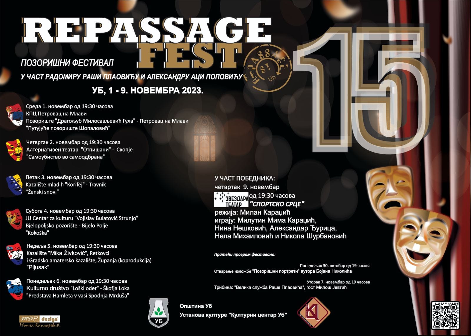 Petnaesti pozorišni festival „Repassage fest”, biće održan od 1. do 9. novembra u Domu kulture Ub.
