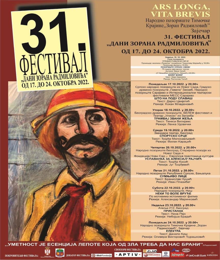 Ovogodišnji festival u čast srpskog glumca Zorana Radmilovića održaće se u istoimenom pozorištu u Zaječaru u periodu od 17. do 24. oktobra.