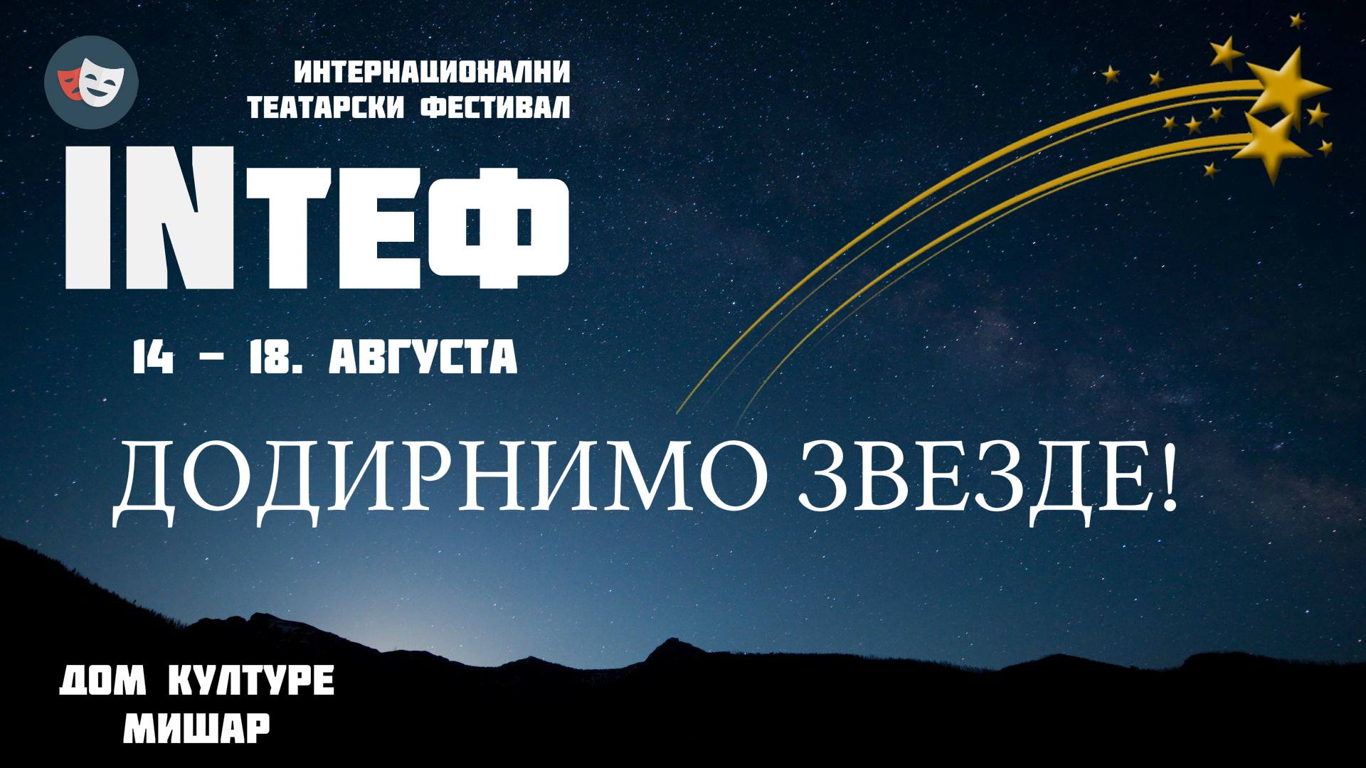 Prvi internacionalni teatarski festival „INTEF“, u periodu od 14 – 18. avgusta 2019. održaće se u Domu kulture na Mišaru, nadomak Šapca. Osnivači festivala su mladi ljudi sa teritorije Grada Šapca (svršeni studenti glume i drugih umetničkih fakulteta), koji su rešili da na jedan drugačiji način inplementiraju u kulturu i pokrenu prvi ruralni pozorišni festival u ovom delu Srbije! Tokom pet dana trajanja festivala, okupićemo mlade ljude iz Srbije i regiona, koji će se nadmetati u izvođenju predstavi nastalih u toku prethodne pozorišne sezone. Pored Glavnog pozorišnog programa, festival će imati i bogat Prateći program: brojne tribine, koncerte, nastupe poznatih zvezda iz pozorišnog i filmskog života i druge prateće sadržaje.