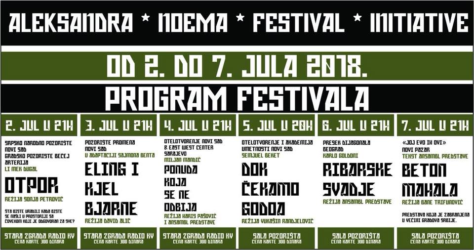 U organizaciji nezavisne pozorišne produkcije „Grupa Grupa“, u Kraljevu se od 2. do 7. jula održava peti po redu festival alternativnih pozorišnih družina Srbije – A.N.F.I.TEATAR, koji promoviše nove pozorišne forme, misao i jezik.
