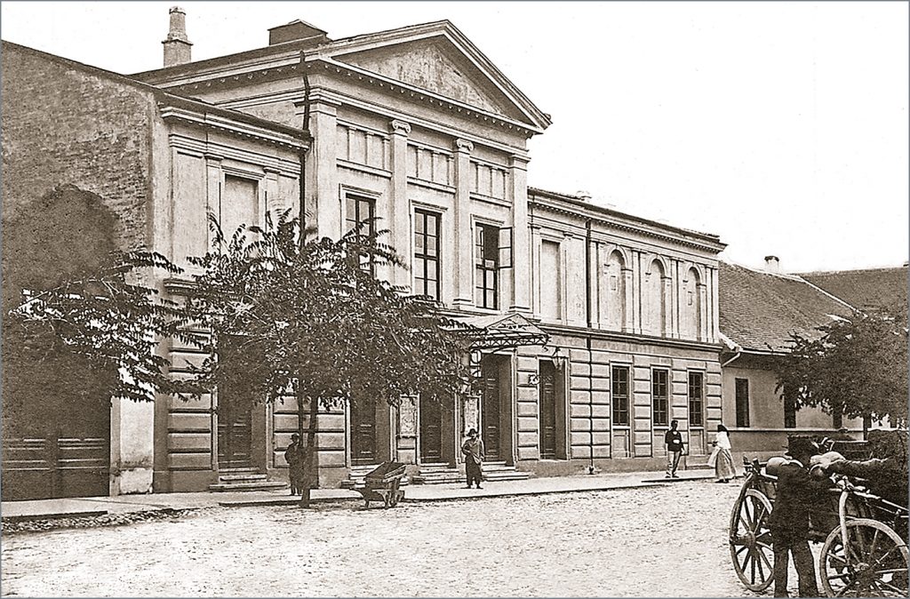 Pozorište je otvoreno 1854. godine predstavom A két Barcsai (Dvoje iz porodice Barčai), trupe iz Mađarske. Pored gostovanja mađarskih pozorišnih trupa, gostovalo i Srpsko narodno pozorište iz Novog Sada. Zgrada pozorišta je renovirana 1904. godine kada je iznad korintskih subova stavljen natpis VÁROSI SZÍNHÁZ (Gradsko pozorište). Pozorišna zgrada je izgorela u Prvom svetskom ratu 1915. godine. Kako je grad imao potrebe za predstavama, ubrzo je oformljeno privremeno pozorište u Velikoj sali hotela „Pešte” (kasnije nazvan „Beograd”) u kom su gostovale trupe. Predstave u privremenom pozorištu su izvođenje do 1926. godine, kada je podignuta i nova zgrada pozorišta. Posle otvaranja nove pozorišne zgrade, nekoliko sezona je gostovalo Narodno pozorište iz Beograda sa operom, baletom i dramom, kao i Hrvatsko narodno kazalište iz Zagreba. Za vreme fašističke okupacije samo su igrane prestave na mađarskom.