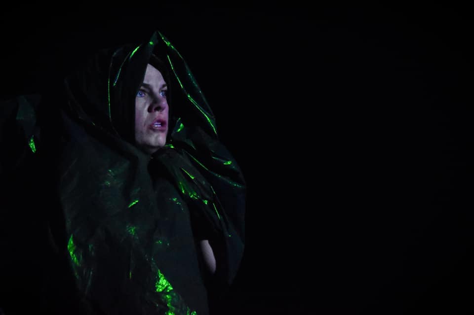 U svojoj zbirci „Dela i dani Lavinije”, po kojoj predstava i nosi naziv, Jelena Švarc opisuje manastir koji se nalazi u preseku prostora i vremena u svetu koji je stvoren njenom fantazijom. Kojim dramskim sredstvima ostvarujete ovakav efekat?