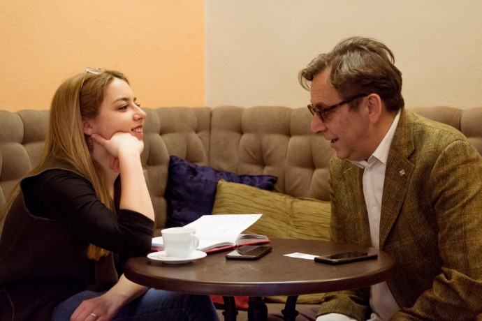 Dolazim, i odmah priznajem da imam ogromnu tremu (Jelena koja fotka ovo, nije ni spavala od uzbuđenja), Tika kaže da ne brinem. Intervju počinje vrlo profesionalno, ja pitam, on se trudi da odgovori tako da imam što manje posla u transkripciji.
