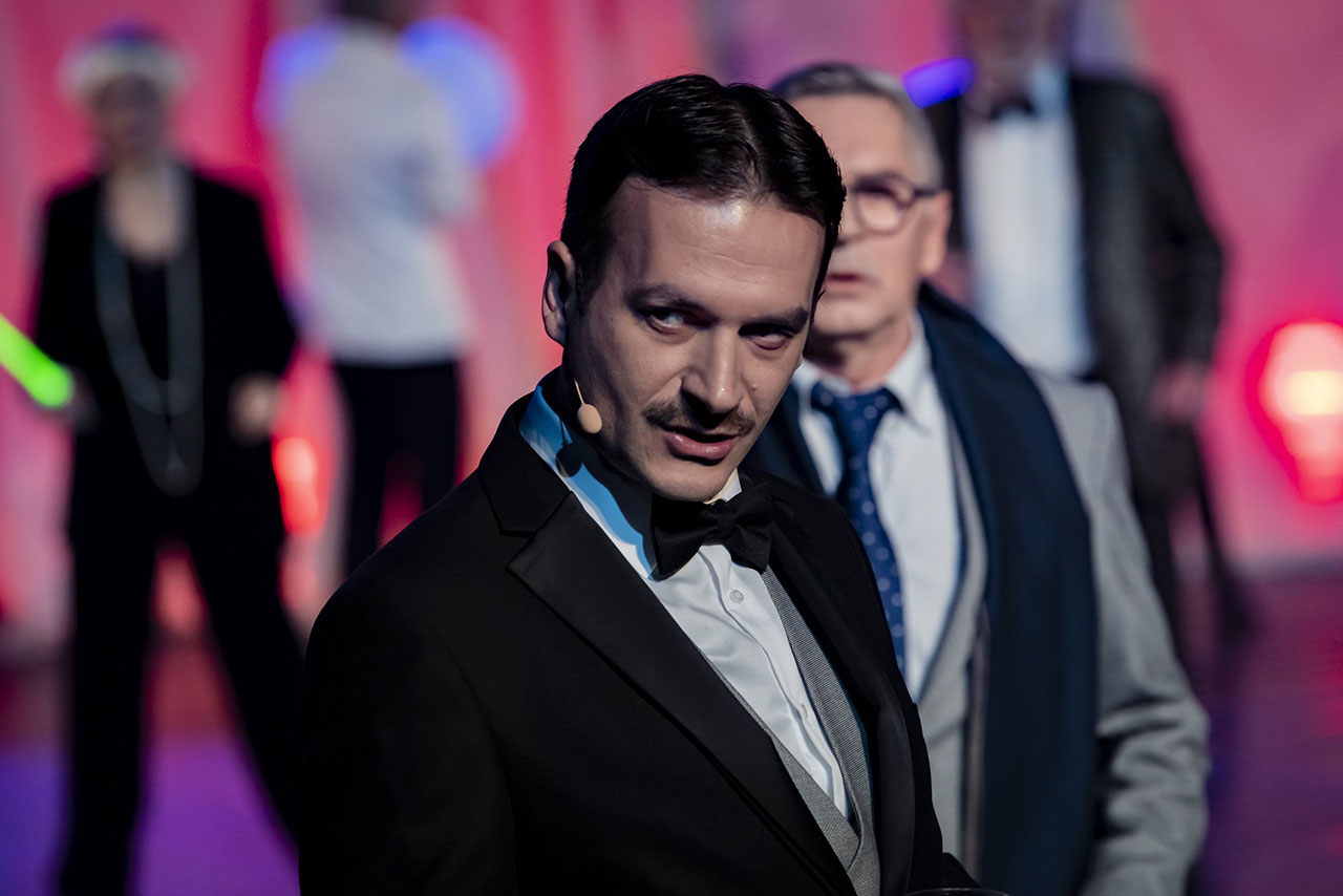Tu su i naučnici, bankari, zlatne devojke i momci, policajci, plesačice, konobari – svi oni imaju nekoliko koreografija, lepe i šarene kostime. Trenutak koji bih možda posebno izdvojila i koji je, čini mi se, delovao najemotivnije, jeste sahrana Teslinog brata, koja je ostavila veliki utisak na njega jer je imao strašan strah od svetlosti. Taj momenat predstave prožet je tačnim i svedenim koracima, poigravanjem svetla i muzičkih efekata munje i gromova. Što se tiče same muzika koju je komponovala Aleksandra Vrebalov, u nekim delovima je naglo nadolazila, ali je uopšteno modernizovana, prijemčiva i fino se stapa sa vizuelnim identitetom. Valjalo bi nešto reći i o scenografiji Miodraga Tabačkog – elegantno belo platno pokriva visoke stepenice preko kojih akteri prolaze destinacije, godine, vreme. Tu je i sve vreme mali mesec u uglu pozornice i veći mesec koji se spušta po potrebi i emituje određene snimke. Sve u svemu, vizuelno okej.