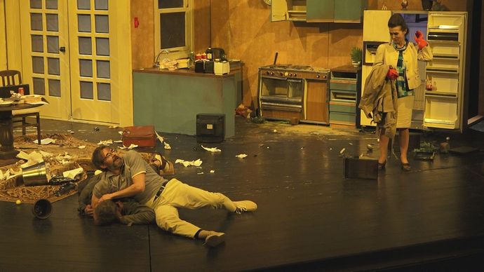 Dok razmišljamo o ovome, ili se čak borimo, zapali smo u haotičnost drame. Vrtlog neznanja oko sledećeg koraka nam govori da ne znamo ni da li smo dobro postupili u ovom. Na sceni uviđamo raskoš katastrofe. Saksije su pobacane, tanjiri razbijeni, zavesa je skinuta, telefon isčupan, a oba brata su prljavija nego ikada. Na vrhuncu drame stoji neizvesnost kao nekakav monolit. Maestralnost glumačke ekipe je srazmerna delu. Sada Li piše scenario, ali oseća da nije dorastao tom zadatku, te traži bratovu pomoć. Brat okušava svoju ličnost i pokušava da bude Li. Krade tostere, pije i zabavlja se. Sukob se ubacuje u petu brzinu i muti nam sve pred očima. Ono što je magično jeste što mi u svakom momentu predstave bivamo podeljeni između dva lika. Da li je to ono što želimo? Ne. Zašto? Zato što smo navikli da budemo u našoj zoni komfora i podržavamo jednog, provereno pozitivnog lika. Sem Šepard to ne dozvoljava. Ne dozvoljava nam da budemo razmaženi, već kleše od nas ličnosti kakve zaista gledamo u ogledalu. Ispred tih klesanih ličnosti se na sceni Srpskog narodnog pozorišta dešava tornado. Tornado emocija, obrta, strasti i sâme egzistencije.