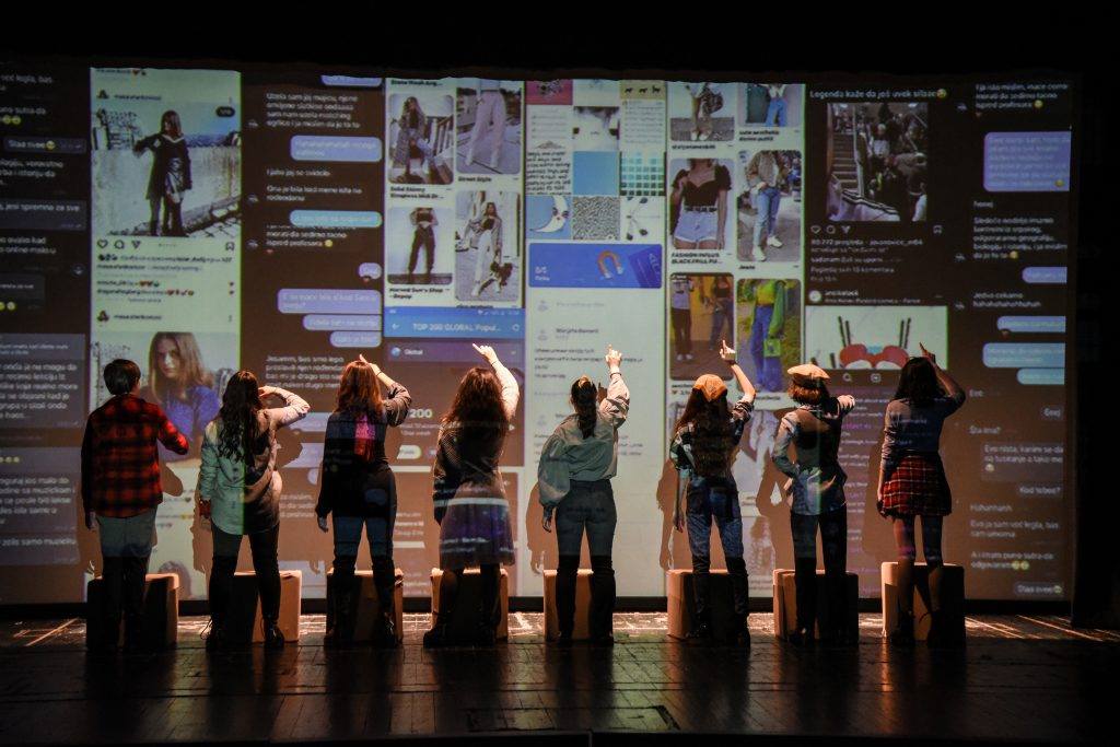 U svet mladih 21. veka uvodi nas digitalna scenografija na samom početku komada – projekciono platno na kome se prikazuju ljudski obrisi, koji se uz ritam muzike iz pozadine naizmenično približavaju publici, a potom i udaljavaju od nje. Stupanjem tinejdžera na scenu otpočinje dinamičniji tok narativa, koji biva ispresecan songovima u njihovom izvođenju i na taj način tematski raščlanjen. Muzika postaje neraskidivi deo scene (ali i način iskazivanja bunta), te čitav pozorišni komad na momente podseća na mjuzikl. Pa ipak, ono što uozbiljuje ovakvu pozorišnu formu koja odiše živom i razigranom atmosferom jesu teme u kojima su mladi glavni akteri. Velike kocke koje često nose sa sobom, slažu, preslažu ili koriste za sedenje, aludiraju na prekrajanje njihovih životâ (a možda predstavljaju i simulaciju pokušaja „građenja” utopije?). Sopstvena iskustva iz porodice i škole oni oživljavaju na sceni, gde nastupaju ne kao glumci, već kao prenosioci važnih poruka – njihove reči, izgovorene pred publikom, postaju autentična i lična svedočanstva o problemima sa kojima se susreću u svakodnevnom životu, dok se scena za tren pretvara u medij za prenošenje njihovih poruka, odnosno u svojevrstan most između „sveta mladih” i „sveta odraslih”.