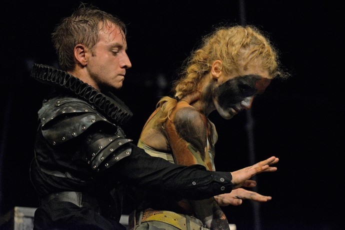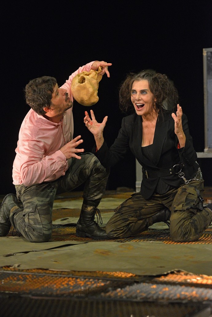 Prilično zanimljiv deo predstave čini brehtovski komični dvojac – Stela (Aleksandra Pleskonjić) i Trinkulo (Milovan Filipović). Stela od rekvizita nosi pljosku napunjenu vinjakom (to vam sve govori o njenoj ličnosti), a Trinkulo nosi lobanju koju glođe. Oni predstavljaju mediokritet društva što možemo uočiti kroz njihove razgovore u kojima su željni vlasti i položaja dok ih sa druge strane vidimo ponizne, potlačene i potčinjene svom kralju.