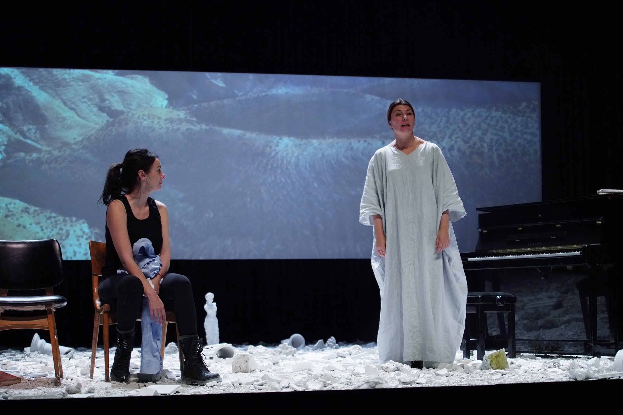 U Jugoslovenskom dramskom pozorištu izvedena je premijera predstave „Vatre” Marije Velasko u režiji Karme Portačeli. Tekst je nastao po motivima proze Margerit Jursenar.