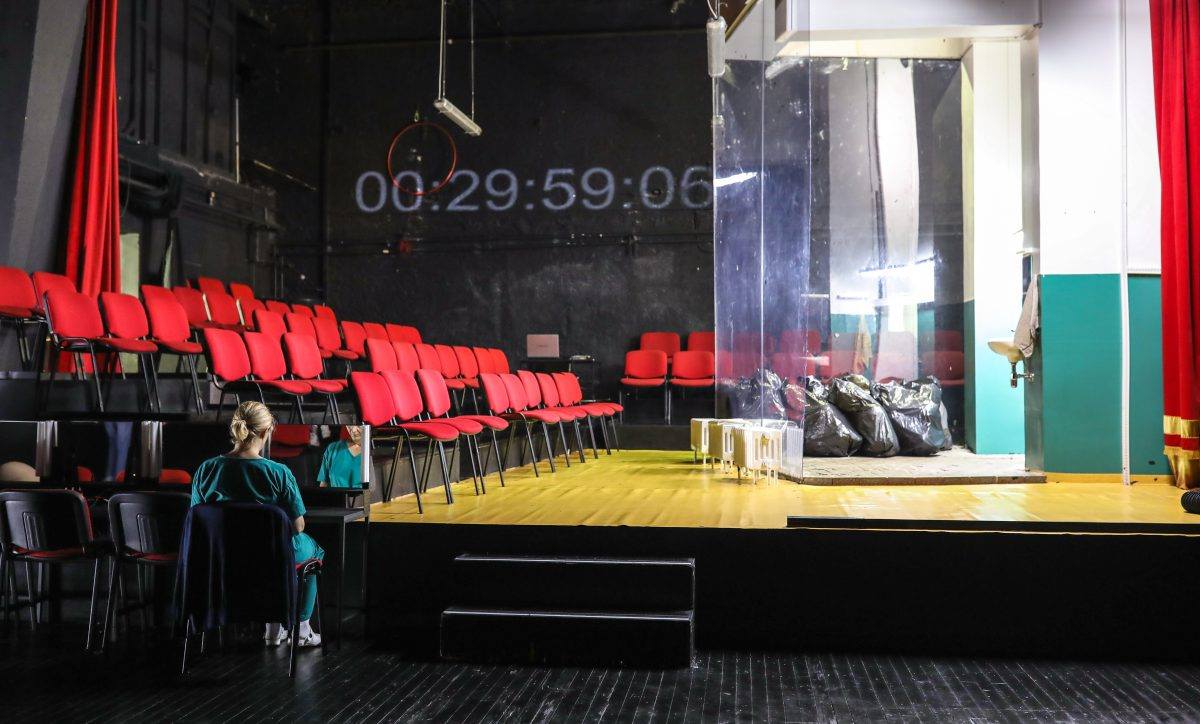 Scenografija na prvi pogled predstavlja veoma važnu kariku u razumevanju čitave radnje: tek u jednom uglu scene prikazan je manji deo bolničke ordinacije ograđene prozirnim plastičnim „zidovima”, dok su oko same ordinacije, zauzimajući veći deo scene, poređane crvene stolice čija boja asocira na krv, smrt, leševe. Veći deo ordinacije vešto je skriven od pogleda publike, što dodatno mistifikuje taj prostor, u kome se koncentriše gotovo sva tragedija ovog pozorišnog komada. Njegovi akteri stupaju na scenu iz gledališta, čime se briše granica između „glumaca” i „publike”, pa pasivni gledaoci najednom postaju očevici. Jedna od medicinskih sestara koja prva stupa pred publiku učestvuje u apsurdnoj sceni vađenja žutih balona iz crnih kesa, koji potom, jedan po jedan, pucaju pred njenim očima. Upravo to nenasilno cepanje balona predstavlja pucnje koji nas uvode u strahote rata u Sarajevu, tematske srži ovog komada, ali i aluziju na nevino stradanje tamošnje dece i njihove nedosanjane snove. Taj vizuelni momenat, izražen kroz rekvizite, pokret i pogled, čini ključni element u razumevanju čitavog narativa, koji se od početka do kraja zasniva na kompletnom odsustvu teksta. Međutim, kao da se u tom „ćutanju” glumaca krije sva napetost i dinamičnost radnje. Osim toga, i među gledaocima, usredsređenim isključivo na razumevanje simbolike scenografije, tišina prerasta u muk, koji postaje intenzivniji od govora. Gromoglasni zvuk rata koji odzvanja u pozadini, kovitlanje gareži nad bolničkim krevetom, smenjivanje leševa (pacijenata i medicinskih sestara) u ordinaciji – samo su neka od rediteljskih rešenja za prikaz smrti u tadašnjem Sarajevu. Prikaz trudnice u grotlu takvog nasilja (ali i prisustvo isključivo ženskih likova na sceni) dodatno ističe tragediju rata, dok vrhunac morbidnosti pozorišni komad dostiže scenom u kojoj jedini muški glumac prvo lagano prosipa pesak na pod, a zatim iz kanti izliva krv. Dok škripa peska koji pada na pod nedvosmisleno podseća na zvuk zemlje koja se iz sveže iskopane rake sručuje na kovčeg, krv još slikovitije prikazuje posledice rata, izazivajući pri tom mučninu i gađenje.