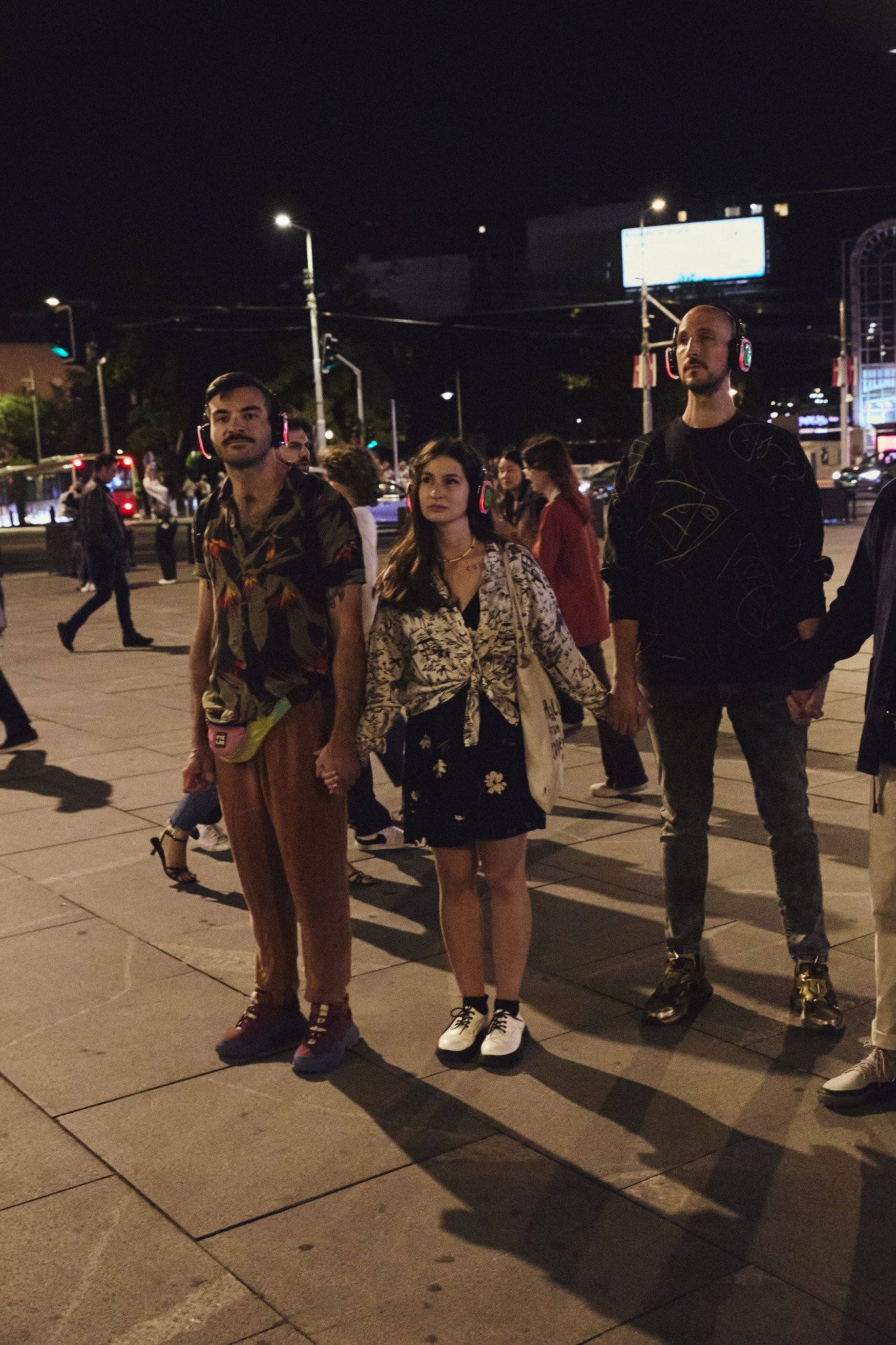 Setila sam se i muzičke kulture. „Rukoveti” – nisam tu reč čula još od sedmog osnovne. Stevan Stojanović Mokranjac. Zbirka narodnih pesama povezanih, poput cveća, u raskošan buket; svaki može stajati zasebno, ali lepše i ponosnije stoje kada su udruženi. Tako smo i mi, gledaoci/učesnici, pravije i stamenije stajali kada smo se držali za ruke, formirajući neraskidivi lanac. U ovoj su šetnji učestvovali ljudi različitih pozadina koji su se tu našli, na tom mestu, u tom trenutku slučajno, namerno, sudbinski, nasumično; bilo kako bilo, našli su se i krenuli u istraživanje. Taj vid istraživanja je lično meni svakidašnje dešavanje – kada šetam ulicama često skrenem u neki budžak, primetim nešto pored čega većina samo prođe. Jednostavno, samo imam previše vremena u svojim rukama i onda tako idem i zveram unaokolo. Zalazim u džepove grada, u nogavice, u gajke za kaiš, porub, dugmad, rajsferšlus… uđem u grad kao u pantalone, nosim ga, onda skinem i vratim u ormar. Možda je neko zaboravio da je to mogućnost – da dok šeta digne glavu i vidi svetlo upaljeno na trećem spratu ili zastakljenu kancelariju u kojoj se ljudi kreću od fotokopir mašine do stola, žive svoj život neprimetno, a neskriveno. E pogotovo bi oni trebalo da svrate, da se upuste u ovu šetnju. Eto, to je ova predstava – podsetnik da dignemo pogled, da udahnemo duboko, osvestimo svoje kretanje kroz grad, osmotrimo hotele, da se zapitamo ko je u njima odsedao, šta je radio. Da prolaznike o koje se obično samo očešamo u prolazu pogledamo i u tim očima vidimo život. Kako da zastanemo ispred Hotela Moskva i pojmimo da je tu odsedao Rej Čarls, osluškujući zvučnu auru beogradskih ulica, a slepi smo za život koji se oko nas odvija svakoga trenutka, slepi za svoje sugrađane? Ova predstava stavlja u perspektivu činjenicu da nismo sami, i ne samo da nismo sami nego smo svi zajedno jedan organizam. Tečemo kao reka. To smo mi – reka koja teče ulicama Beograda svakog dana i uliva se u neke druge ulice, neke druge gradove, evropske, svetske, uliva se, a i u nju se ulivaju. Mi smo deo te vode, a i ta voda je u nama. Luka u jednom trenutku kaže da je čovek 80% voda – to je lep motiv. Podseća nas da je naše svakodnevno kretanje ritmično, da pulsiramo, treperimo, hitamo, jurimo. Mi smo posebna vrsta reke – ponornica. Postoje samosvesne deonice našeg toka, zaokupljene mišlju kako možemo više i dalje, raskošnije i blaženije da tečemo. Kada pak ne osvešćavamo svoj tok, tada prestajemo da budemo misleća reka, pa više ličimo na baru.