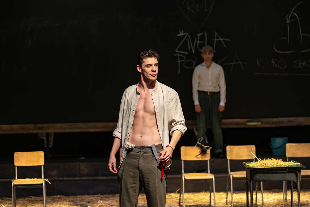 Sa scene dopire opomena, a istorija kao da nijednu generaciju ništa nije naučila, već se samo ponavlja, nekad u izmenjenom kontekstu, a nekad vrlo transparentno i ogoljeno. Zato se postavlja pitanje: čiji je „Naš razred”? Ima li on okvire i granice? Šta znači zlo i ko ga proizvodi? Da li, ako na činjenje zla ne reagujemo, isto tako u njemu učestvujemo? Ima li zlo više imena, oblika i funkcija? Primećujemo li ga?