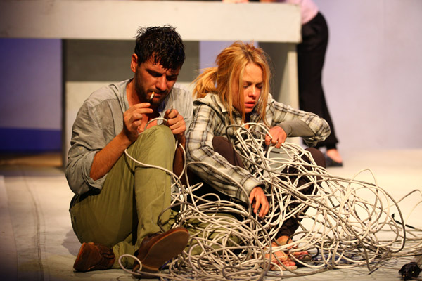 Na tri različita nivoa zgrade odvijaju se različite priče. Svako od pet glumaca iznosi tokom komada tri različite uloge. Ali dok oni tako iz jedne uloge ulaze u drugu, svi ostaju pod velom mraka. Iz narkomana u makroa, iz makroa u dilera, iz prostitutke u sponzorušu. Tako diler, narkoman, sponzoruša postaju vidljivi, postaju prisutni kao pojava, a čovek je samo obličje, marioneta. Postaju zapravo velika metafora. Baš kao što je to i cela predstava.