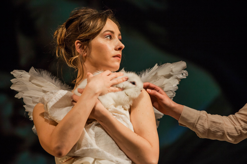 Interesantan deo predstave je pojava zeca – koji se s početka nalazi ispred zavese, a na kraju završava u rukama Anđela – sve vreme igranja predstave obitava u svom kavezu, i predstavlja sponu Majke i Ćerke.