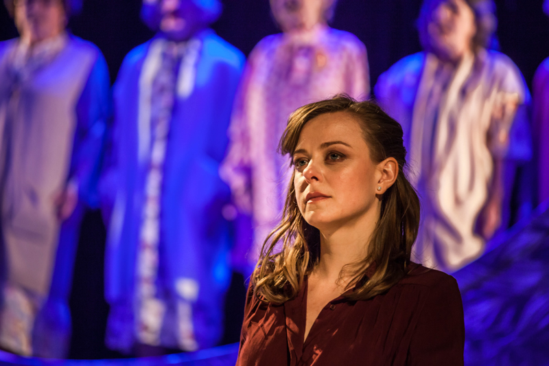 Dijalozi, ali i misli koje se pretaču u reči, ponekad stvaraju depresivnu atmosferu, složićemo se, samo delo nema vedru poruku, da bi bili prekinuti nizom komičnih situacija. Najviše ih čine, Gorica Popović kao Gospođa, koja se oglasi u nekoliko trenutaka, i Isidora Minić kao glavna sestra, prolazeći povremeno scenom i izgovarajući replike o tome da će sve biti dobro i „da za sve treba imati strpljenja”. Hor starica, koje se pojavljuju u centralnom, uzvišenom delu scene, donosi nam više puta presek predstave. Najupečatljiviji deo horskog pevanja predstavlja pevanje dečije pesme „Rodila nas majka”, uz komične pokrete koje zajedno čine.
