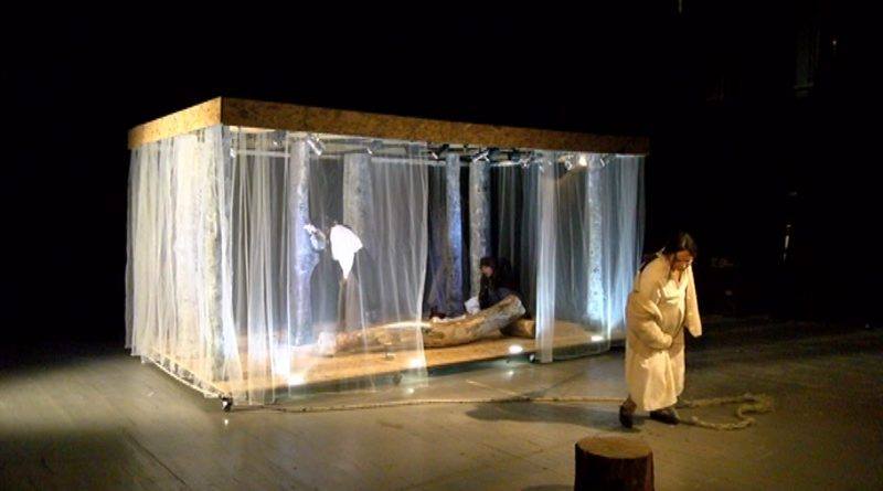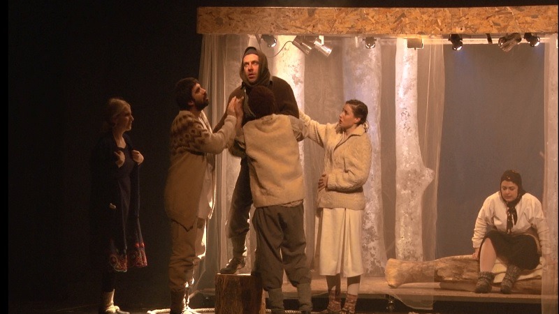 Pozornica je blago osvetljena. Beličasta svetlost pada na skromnu kuću jedne porodice, kuću u malom planinskom selu koja nedvosmisleno podseća na kavez. Tri generacije borave pod istim krovom, u prinudnoj tišini, živeći prinudan život... Uostalom, kao i ostatak meštana. Belina kostima glumaca (vunenih džempera, jakni, haljina...) verno dočarava ambijent zime i snega, postajući jedini zrak svetlosti u mraku koji okružuje čitavu scenu. Sablasnosti atmosfere doprinosi i patološki strah (naizgled svih) članova porodice od obrušavanja lavine, agonije koja traje devet meseci u godini. Primorani da uguše svoje želje i nagone, ali i da priguše svoje glasove, nestrpljivo iščekuju kraj „kriznog perioda”, kada će i opasnost od lavine proći, a oni moći da se, barem nakratko, vrate normalnom životu. Mladi bračni par koji očekuje dete u fokusu je narativa, dok se radnja komada dinamizira na samom početku, kada mlada žena, snaja domaćina kuće, oseti prevremene porođajne bolove, i to u onom periodu kada je jedino šapat dozvoljen kao način komunikacije. U iščekivanju sudbine mlade žene, tenzija raste: da li će i ona biti živa zakopana, „ućutkana”, kao i trudnica pre gotovo 40-50 godina, kako njeni krici i plač deteta ne bi izazvali obrušavanje lavine?