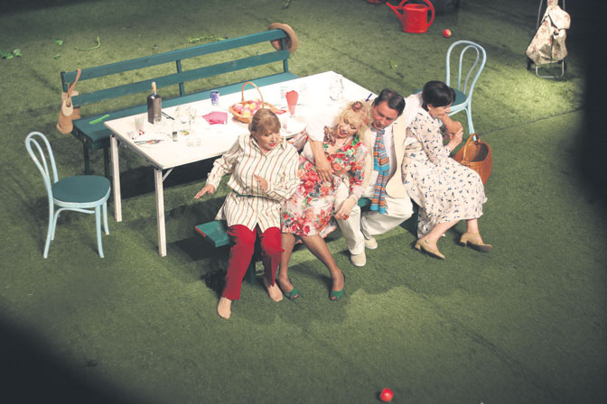Baš u trenutku kad veselje četvoro starih ljudi dostigne svoj vrhunac, na scenu stupa snaha jedne od tri prijateljice, mlada Natalija, koja unosi jaku dozu surovog realizma čim počne da priča o svom teškom životu, napornom radu i porodičnim nesporazumima čija je ona žrtva dok njena svekrva bukvalno žmuri pred svim tim problemima. Nesrećna i napaćena već u mladosti, Natalija smatra da su njena svekrva i ostali okupljeni penzioneri samo obični paraziti koji bi da uživaju dok ih neko drugi izdržava.