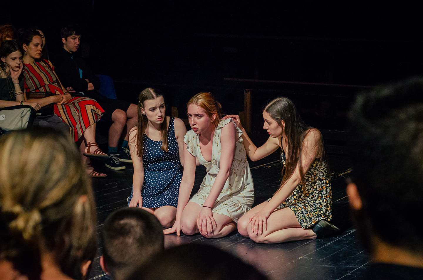 U predstavi, njih devetnaestoro, igraju likove svoje generacije, ali i generacije roditelja, nastavnika i direktora. Transformišu se, čini se uživaju, ali i strahuju od pozorišne scene, od uprtih pogleda, koji su tu odmah naspram njih. I to je normalno.