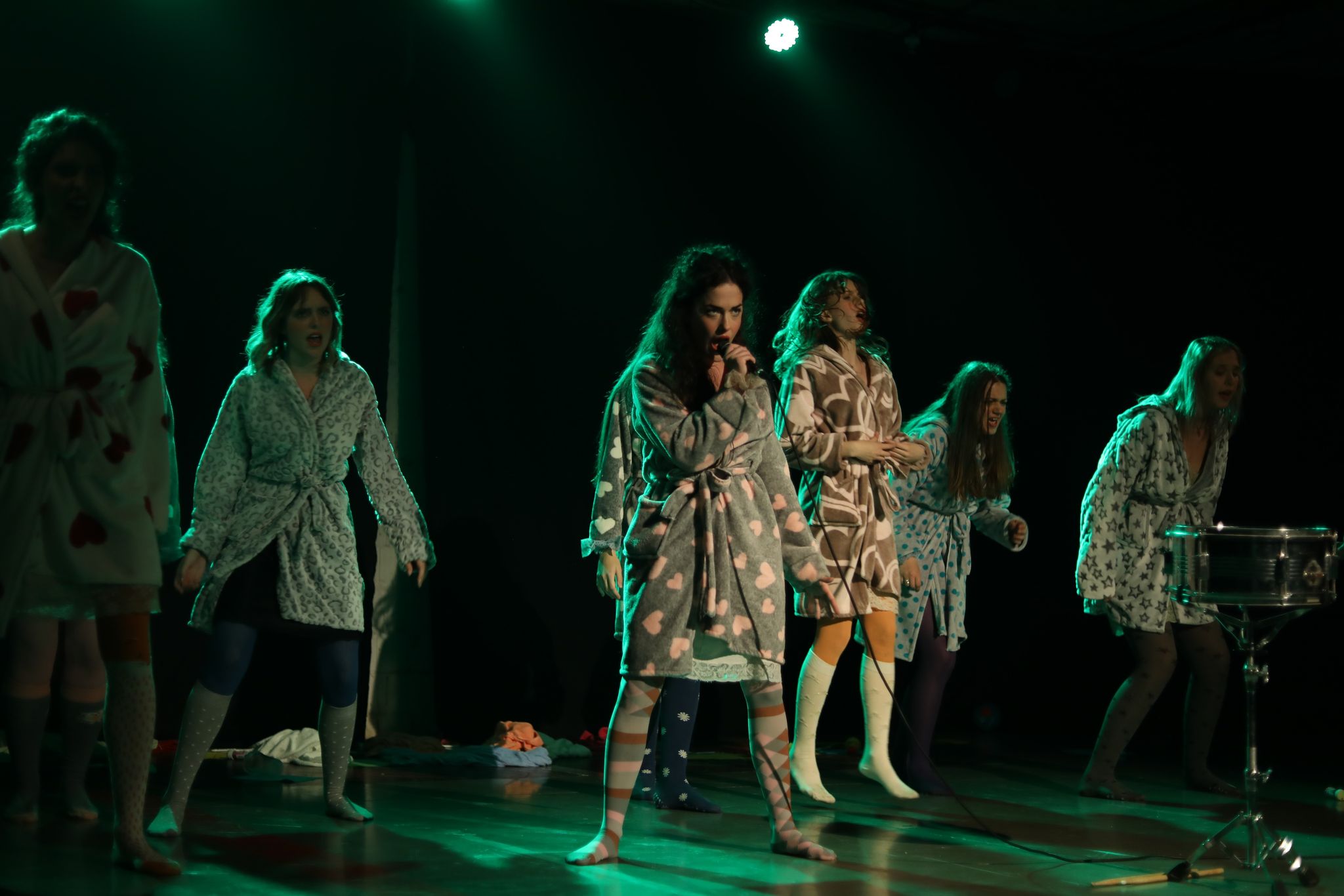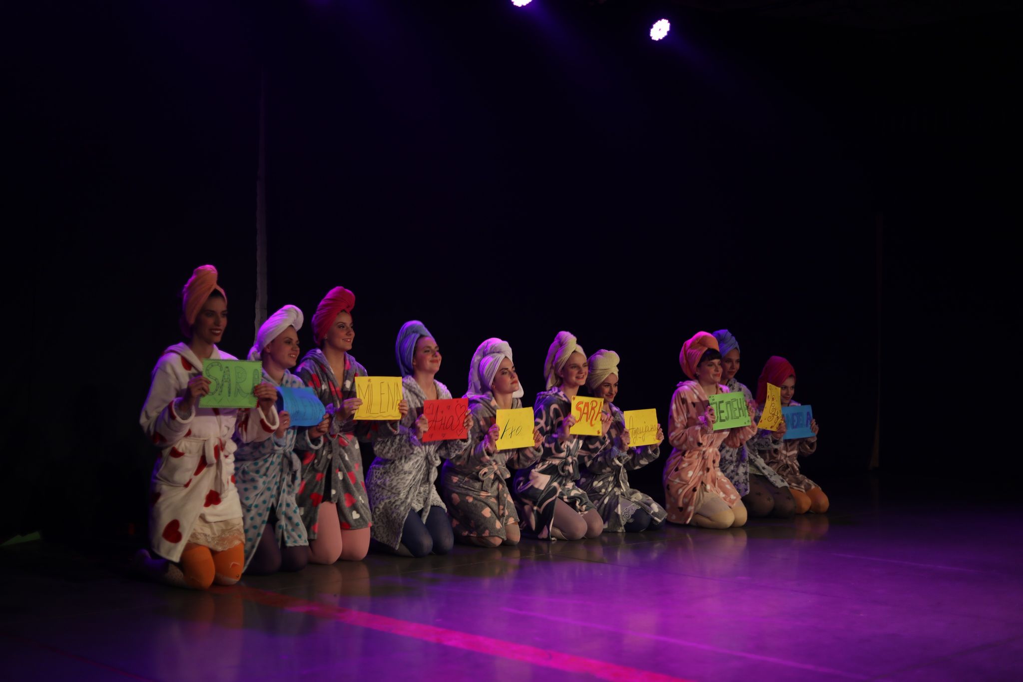 Za kostimografiju zadužen je Aleksandar Kovačević koji se odlučio za dominaciju roze boje. Glumice su bile odevene u bademantile sa šarenim čarapama što upućuje na „princeze koje odrastaju u bajkama”. Na kraju, kada su priče ispričane i devojke nemaju više šta da sakriju od prisutnih, roze boje više nema. Sada preovlađuju tamne boje i upečatljive čarape i spavaćice na kojima su ispisani brojni pogrdni epiteti sa kojima se svaka devojka bar jednom susrela.
