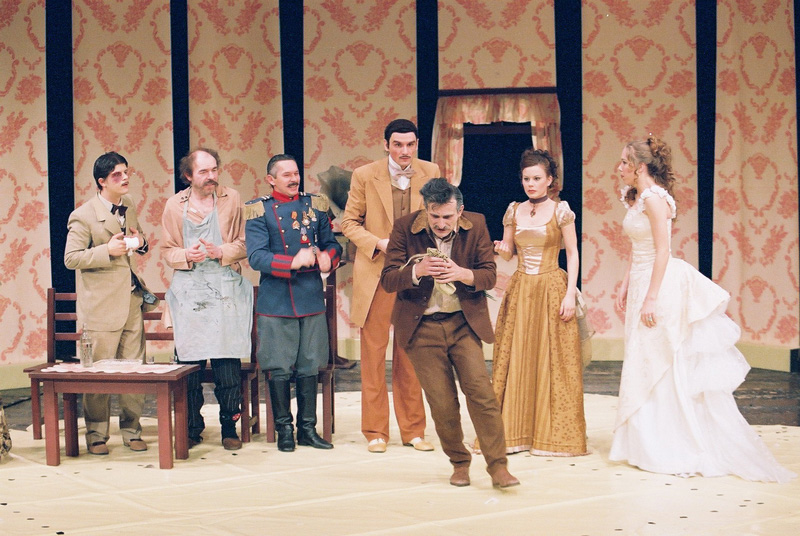 Smešni karakteri konkretnih dramskih likova otkrivaju šta se zapravo krije iza njihovih uzajamno uspostavljenih odnosa. Leposava, kći od prve žene (Milica Grujičić); Jevrem, penzionisani oficir (Miroslav Fabri); Nikola, rukodelac (Strahinja Bojović); Maga, Nikolina žena (Jovana Balašević); Mitar, kum Maksimov (Milovan Filipović) i Svetozar, pisar i Sofijin srodnik (Milorad Kapor) poštujući sterijanski tekst i narečje, kroz svojstvene gegove i lakoću uigranosti, blago ironično nam rezonuju mračnu stranu sveta u kojem živimo.