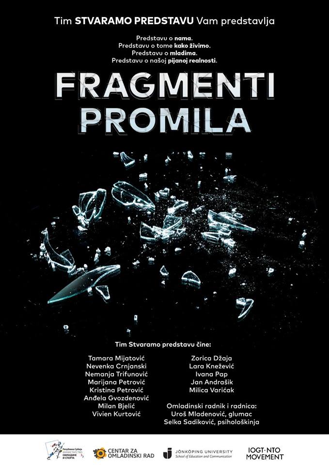 Premijera predstave “Fragmenti promila” biće izvedena u subotu 14. aprila u Kulturnom centru Novog Sada. Reč je o predstavi koja govori o tome kako živimo, predstavi o mladima i o našoj pijanoj realnosti.