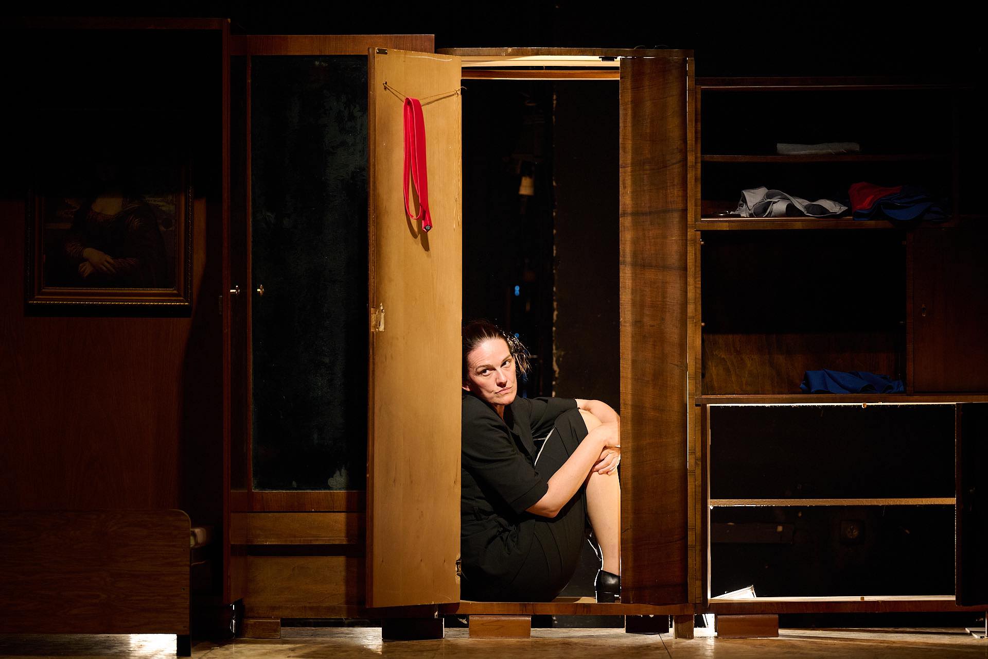 Obećala sam i nekoliko redova o pomenutoj scenografiji. U nizu i bez reda postavljeni su komadi nameštaja – ormar, vitrina, vitrina, ormar – i sto postavljen naspram ovog niza. Razmišljam, koliko bi verodostojnije bilo predstaviti porodični dom, autentično, a ovako izgleda kao da su priča i scenografija koja je prati u diskontinuitetu.