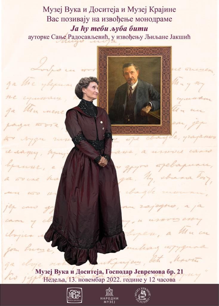 U nedelju, 13. novembra, u 12 časova, u Muzeju Vuka i Dositeja, biće izvedena monodrama Muzeja Krajine „Ja ću tebi ljuba biti” po tekstu Sanje Radosavljević, kustosa pedagoga u negotinskom muzeju. Lik Marije Mice Mokranjac, Mokranjčeve supruge, oživeće Ljiljana Jakšić. Autentičnosti izgleda protagonistkinje doprineli su kostimograf Milan Perišić i vlasuljarka Vida Jakšić Biro.