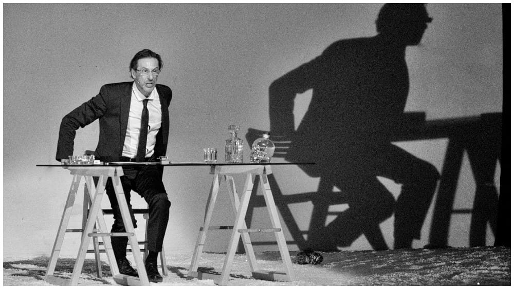 Scena je posuta kristalnom soli koju na kraju glumac igrajući baca među publiku pitajući se – ima li umetničke istine.