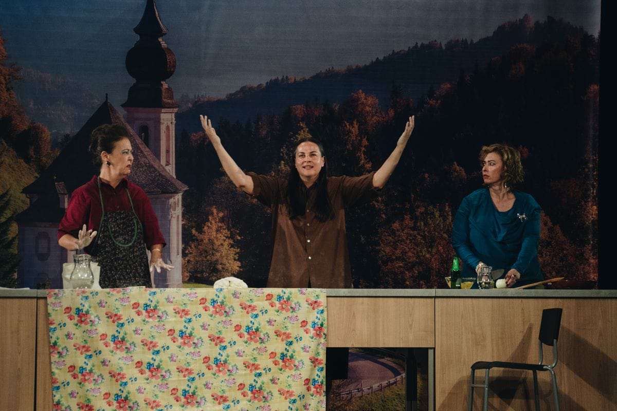 Dramski prvenac „Predsednice”, austrijskog dramaturga Vernera Švaba nam prikazuje isečak iz svakodnevnog života tri čistačice – Erne, Grete i Marice. Radnja započinje njihovim spremanjem ručka i naizgled jednostavim, običnim razgovorom iz kog, zapravo, isijava njihova malograđanština i uskogrudost – brbljanja o društvu, moralu, veri, hvalisanju. Erna je tvrdica, opsednuta je štednjom te uskraćuje sebi i osnovne životne namirnice. Iz njenog govora shvatamo i da je opsednuta seksualnim frustracijama svoga sina. Suprotno njoj – Greta je „grande”, telesno deformisana – u fizičkom izgledu, a i u svojim telesnim zadovoljstvima i požudama. Njena sličnost sa Ernom tiče se dece. I Greta je na određen način opsednuta kćerkom (jer se odselila „čak u Australiju, povadila organe” jer ne želi da rađa). Marica predstavlja vrhunac gradacije ovih triju junakinja – ponosi se, a i rado priča o svom poslu – ručnom otčepljivanju nužnika. Gledalac bi mogao steći pogrešan utisak da je Marica psihički poromećena jer ne samo što na sceni golim rukama vadi g**** i baca uvis i među publiku no i ono što se nađe u šolji konzumira istim tim rukama – konzervu graška, pivo. Njen lik nema psihički poremećaj – Švab, a onda i rediteljka Tomić je prikazuju ovako baš da bi istakli primitivnost i nizak društveni sloj sve tri junakinje. Drugi deo predstave se iz kuhinje seli u gradski ambijent, na zabavu. Tu je zapravo prikazan vrhunac ove tragikomedije. Naziv „Predsednice” je ništa drugo do ironija.