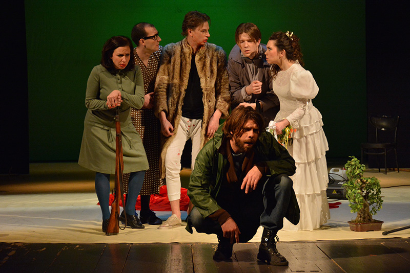 Scenografska rešenja i dosetke su veoma praktične, jer u ovom delu adaptiranom u moderni teatar, svaka rekvizita i deo scenografije imaju više značenja i koriste se na različite načine. Tu su kulise koje prave prolaz kojim likovi prolaze kako bi se uvek vratili na isto mesto, ali i korišćenje rasvete kako bi se ukazalo na vremenske promene. Mizanscen je neverovatno zanimljiv jer se junaci pojavljuju i u publici, ali takođe nestaju sa velike scene i prolaze kroz „tajne” prolaze ispod podijuma (scene) i pojavljuju se ponovo ispred publike!