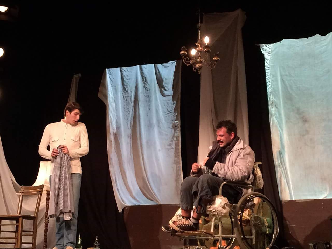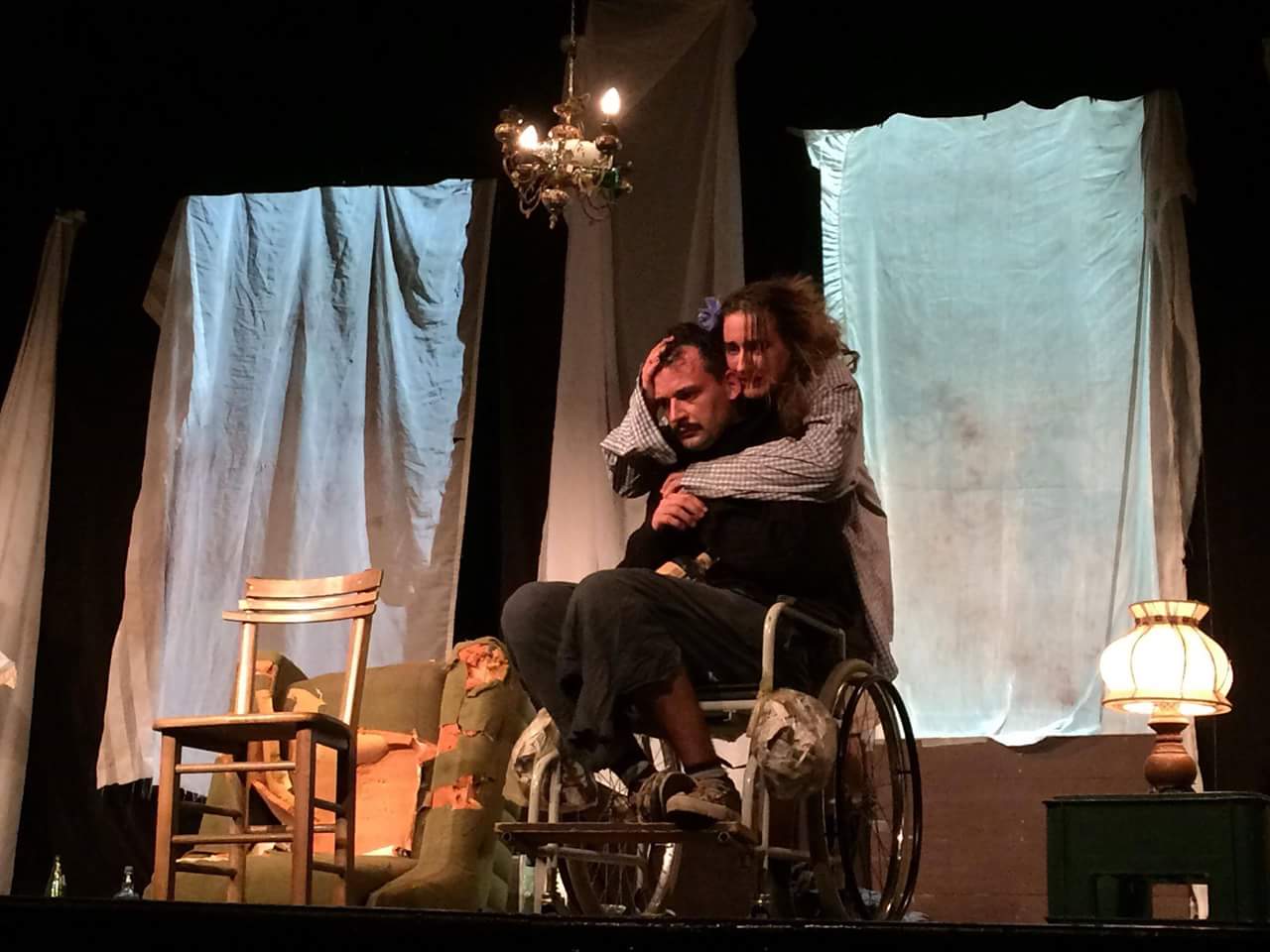 Predstava je deo master rada glumca Ivana Markovića, koji izuzetnim glumačkim sposobnostima dočarava lik Ilje, siromašnog invalida u tridesetim godinama, koji živi na rubu društvene lestvice, svakodnevno se boreći za ostvarenje puke egzistencije, a svoj gnev prema životnim okolnostima u kojima se nalazi, ispoljava kroz alkoholizam i izbegavanje socijalnih kontakata. Nikola Knežević igra Antona, dobro situiranog mladića od osamnaest godina, koji iz želje da pomogne osobi u lošijem položaju od njega, uspeva da se približi izrevoltiranom Ilji i sa njim ostavri odnos, koji od prijateljskog, prerasta u ljubavni. Ana Rudakijević odigrala je ulogu Lariske, Iljine komšinice, koja se u borbi sa živonim okolnostima u kojima se našla, okreće ka Ilji ne bi li se osećala malo manje usamljenom i zapostavljenom, a umesto ljubavi i pažnje, dobija hladan i zatvoren, gotovo formalan odnos.