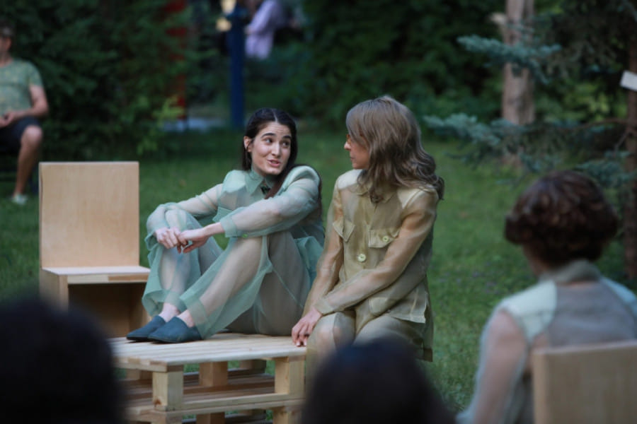 Predivan ambijent Botaničke bašte dopunile su muzičarke na sceni Ana Ćurčin na klaviru i Milena Jančurić na flauti. Tekst vrlo jasno i efektno prenose Dragana Đukić, Jelena Ilić, Marta Bjelica i Mihaela Stamenković, no primetno je da se osim toga na sceni ne dešava puno. Scenu zbog nepostojanja nagiba gledališta do pred sam kraj predstave ni ne vidimo tako da se koncetrišemo na izgovorene reči. Ovaj sjajan tekst bi svoj potencijal doživeo i kao radio drama. I pored toga sve preporuke da ga od jeseni pogledate (ili poslušate) na sceni Ateljea 212.