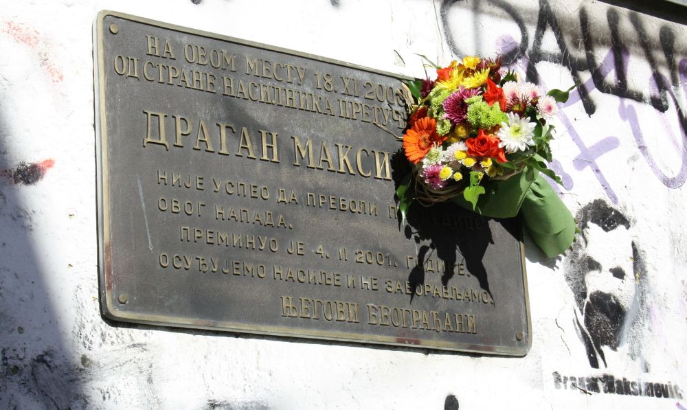 Spomen-ploča je postavljena na mestu gde je nekadašnji prvak Drame Nacionalnog teatra brutalno pretučen u noći između 17. i 18. novembra 2000. Njega su pretukli naci skinhedsi, povezanih sa grupama Кrv i čast i navijačkom United force, jer je bio tamnijeg tena.