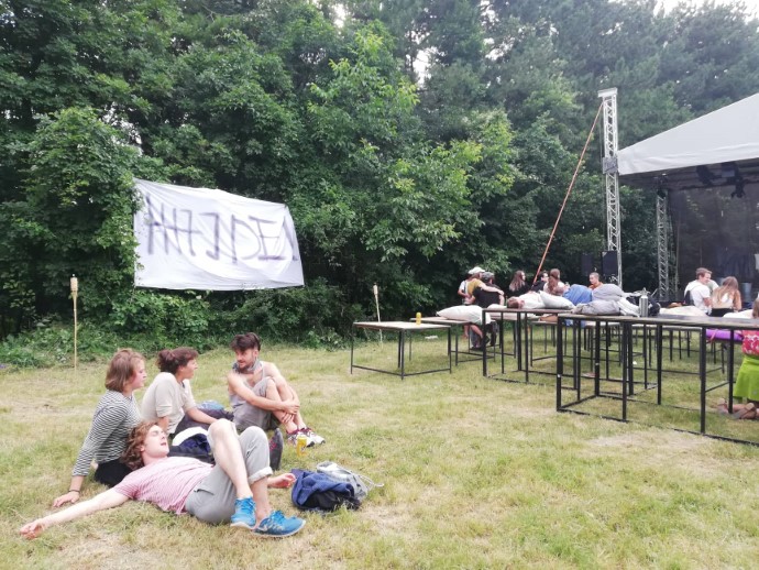 Stižemo na poslednju stanicu, a oko nas svega nekoliko kuća i šuma. Beskrajno zelenilo i strelica koja usmerava na “main stage” HAJDE festivala. Dolazimo do improvizovanog ulaza između dva stabla gde nekoliko momaka i devojaka prodaju karte. Prilazim jednom momku i kažem da sam izportala “Hoću u pozorište” i da je ostavljena akreditacija na moje ime. On me pogleda zbunjeno i obrati se koleginici do njega, na šta mi se ona samo nasmešila i rekla “možeš slobodno da prođeš”.