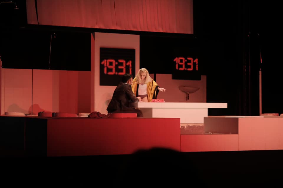 Čitava predstava mogla bi da se sažme u svega jedan minut (o čemu jasno svedoči i sat koji je pred pubikom tokom čitave predstave, a koji na početku pokazuje 19h i 30 minuta, da bi se pred sam kraj pomerio za svega minut unapred). Sve ovo nam govori da je čitav dramski tok svega jedna odlučujuća minuta u kojoj se rešava sudbina čoveka koji izlazi na crtu sopstvenom strahu. U odlučujućim momentima ispunjenim strahom, njegov um stvara čitavu priču o gubitniku odbačenom od društva, koju publika prati tokom trajanja predstave.