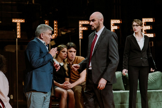 Sam Tartif pred kraj predstave govori da ovo nije komedija. I nije. Molijerov komad imao je nameru da načini satiru na društvo i izvitoperene religiozne vrednosti kako bi ukazao na licemerje, no Tartif Igora Vuka Torbice je čovek koji priča o etičkoj čistoti i osećanjima. On je toliko blag „čovek“ , kako kaže Orgon, tako naglasivši tu instancu da publika ima utisak da je ta osoba zaista otelotvorenje najčistije ljudskosti. No kako posle vidimo – zadobivši poverenje svojim zavodljivim govorima, Tartif dobija i moć da iz porodice u kojoj se našao izvuče i ono što je mračno u svima njima. Na osnovu toga se iz komičnih situacija iz prve polovine predstave, u drugoj scena transformiše u karneval najdubljih ponora ljudskih strasti i nagona, a poput lutkara, konce svojim pažljivo biranim i izuzetno sugestivnim rečima - vuče Tartif.
