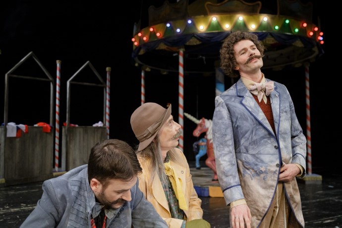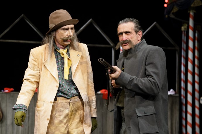Dodaje i da je scenografija takođe živopisna i šarena. Cela radnja je smeštena na vašar, sa ringišpilom i ostalim mobilijarom koji vašaru pripada jer je to, kako je rekao, nešto sa čim treba početi ovakvu priču. Ističe da predstava ne govori o nacionalizmu već o njegovoj svrsi.