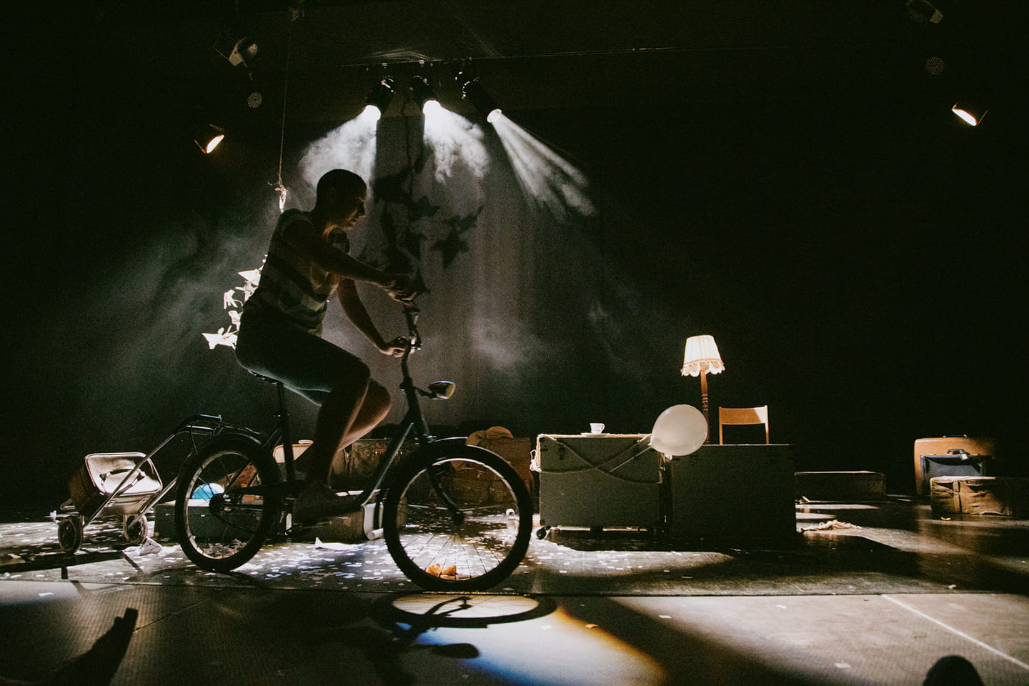 Scenografija je sačinjena od raznih predmeta koje čine detinjstvo naše Akiko. Između ostalog, u pitanju su i koferi, koji dolaze svaki sa svojom sopstvenom pričom. Baš kao i Akiko, koferi su posebni i jedinstveni. O samoj scenografiji i šta ona znači kako rediteljki, glumici, tako i piscu romana, imali smo prilike da saznamo tokom diskusije nakon predstave. Rediteljka predstave, Milja Mazarak, na savršen način dočarala nam je scenografiju, rekavši da koferi predstavljaju zaseban segment života, poput porodice, ljubavi, škole, ali i sve ono u nama što se plašimo da otpakujemo. Sve one dubine, u koje nikako da skupimo dovoljno hrabrosti da zavirimo.