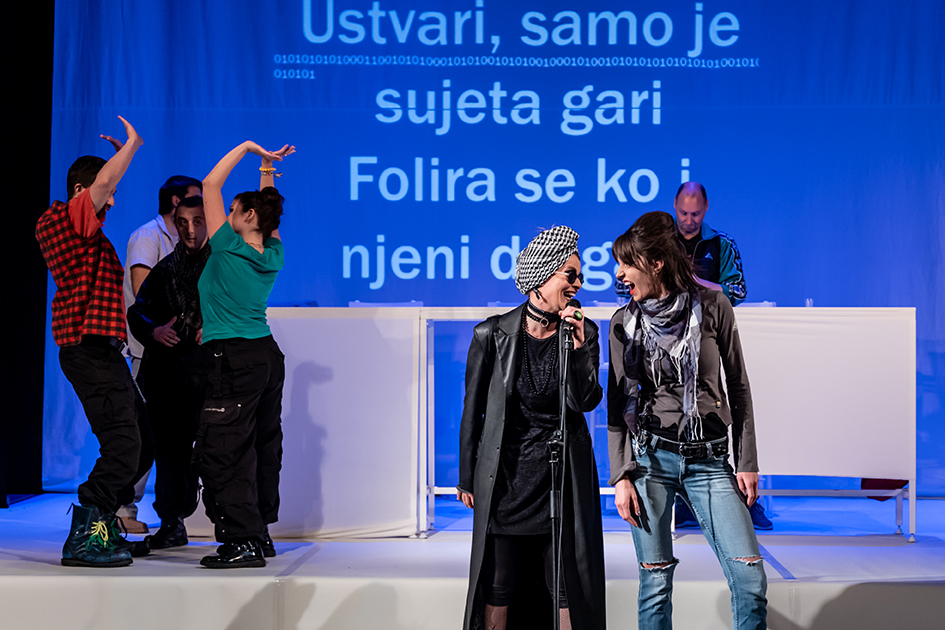 U predstavi igraju: Maja Jovanović, Mihaela Stamenković, Ana Ćuk, Boba Stojimirović, Jovan Zdravković, Uglješa Spasojević i Predrag Vasić/ Danilo Petrović.