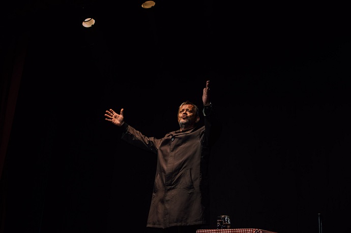 Kroz sat i po vremena monodrame, najzahtevnije glumačke forme, uz skromnu scenografiju koja se sastoji od postolja za šivaću mašinu marke Singer i kafanskog kariranog stolnjaka preko nje, Emir Hadžihafizbegović na lak i jednostavan način izvodi priču koja se tiče kako njega tako i nas samih. Skromno, pažljivo i gotovo precizno kritikujući svaku poru koja se nalazi na ionako vrlo komplikovanom putu života. A šta je život nego mudra priprema za smrt, kako sam kaže. Da li je život istina ili je moja istina istinitija od tvoje? Da li je, kako to Tom Stopard ume da kaže, istina samo ono što smatramo istinitim? Da li se naš dugogodišnji rad na sebi isplati, ako je sve do nas? Ili možda nije do nas? Možda je do nas samo ono do čega možemo da dosegnemo?