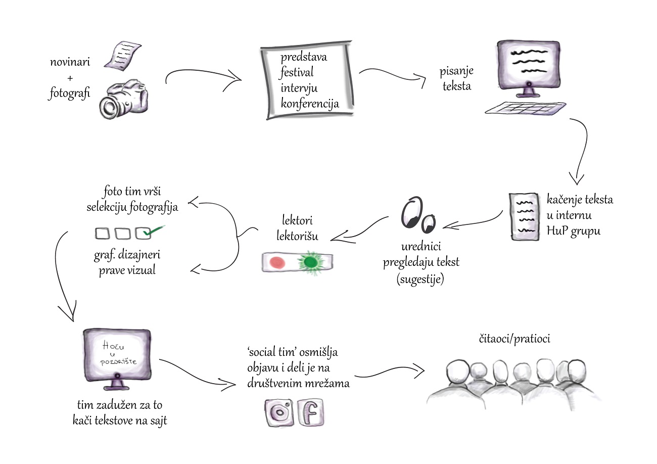 Na ovoj šemi je prikazan jedan mali deo funkcionisanja našeg portala, iza toga je još mnogo stvari koje su neophodne da bi se HuP kotrljao, ali o tome nekom drugom prilikom.