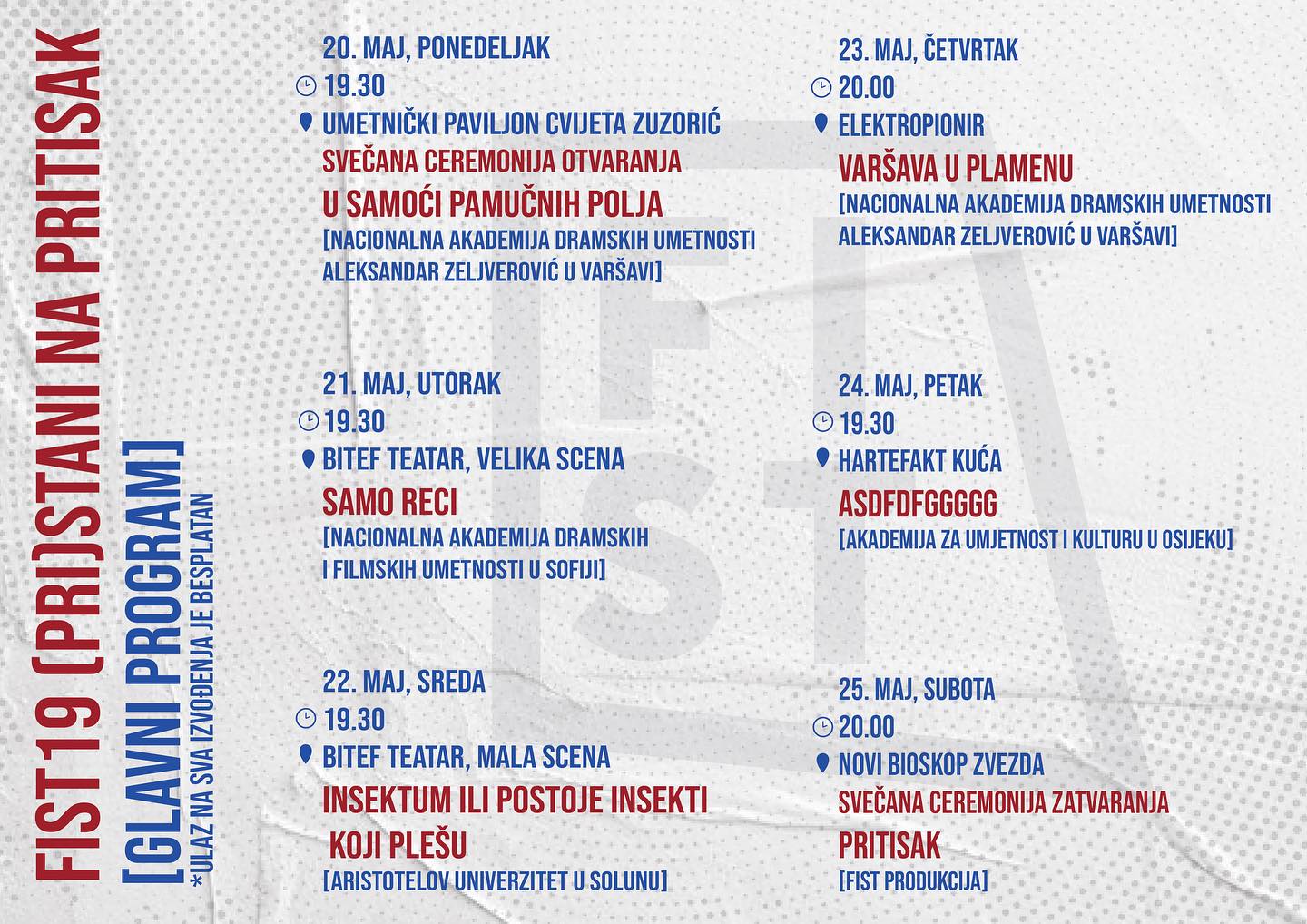 Ulaz na sve programe 19. FIST-a je besplatan.