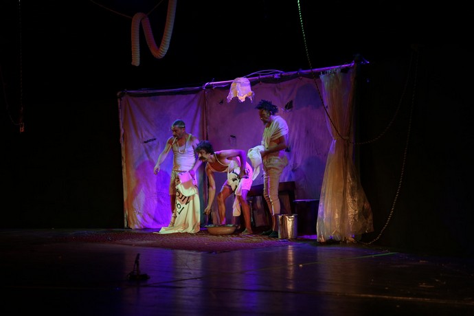Komad „U izgradnji“ zapravo je neverbalna komedija o tri ekscentrika koja dele pretrpan, zapušten stan: sijalice pregorevaju, cevi pucaju, komarci grizu, mozgovi su zbrčkani, svet šalje preteće signale… Ali ova gospoda žele da popiju čaj i tako će i biti, makar se svet raspadao.