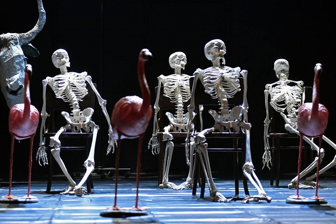 Publika, u manjem broju nego prethodnih godina, zbog poštovanja mera u suzbijanju virusa, mogla je uživati u „Poetici gledanja” – predstavi bez reči, sačinjenoj od kretanja i muzike – tako bi se najbolje mogla opisati. Radnja prati priču šestoro ljudi, njihove pokrete, govore tela na sceni. U prvom delu predstave oni su „ljudi u crnom”, ljudi pod maskama koji stvaraju scenografiju pred očima publike. Fabula biva fragmentarna i neobjašnjiva jer se samo ređaju predmeti pred očima gledalaca. Drugi deo predstave čini da čitava radnja dobije smisao. Prethodno nepovezani predmeti sada su u sintezi – oni predstavljaju sliku iz prirode – bikove, galebove, ribe, zebre, flamingose, a u njegovom središtu je čovek – tačnije njegovi ostaci u vidu skeleta. Da li nam time reditelj sugeriše da je iz cikličnog kretanja prirode nastajanja i nestajanja čovek taj koji je ovoga puta izumro?