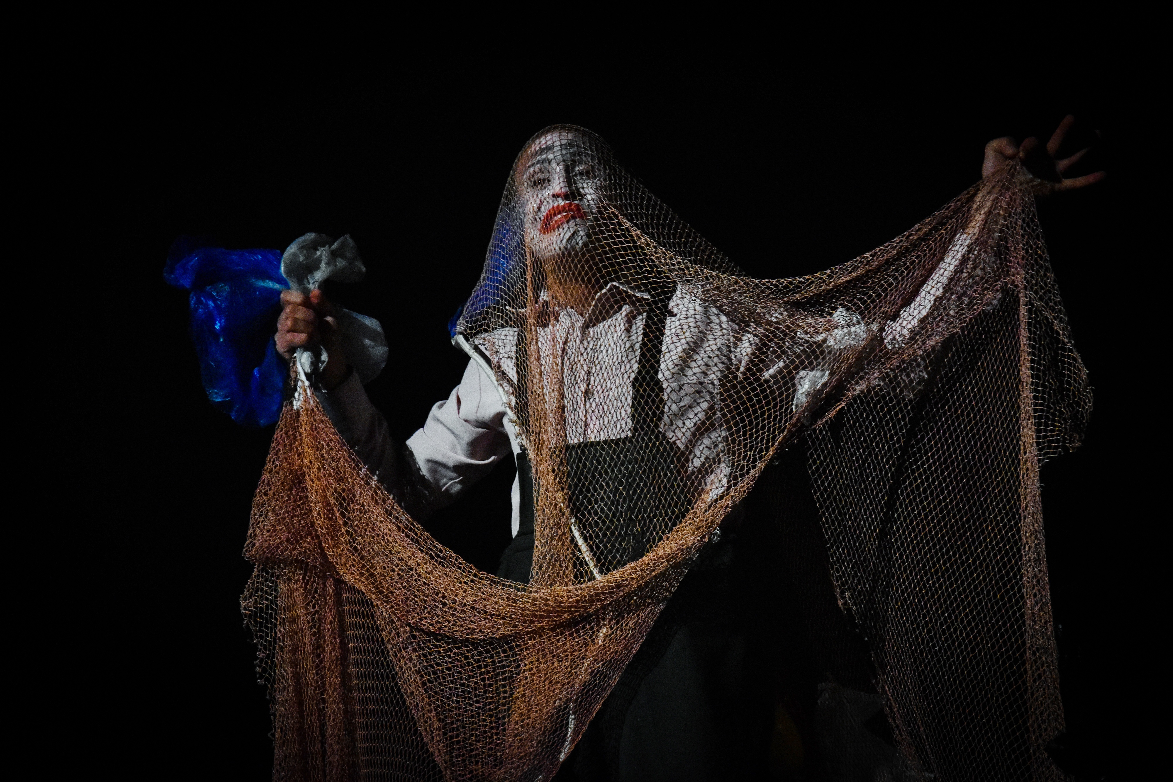 Druga predstava prve večeri „Storyless... Blead” u izvođenju Abdelrahmen Šerifa, pozorišnog umetnika iz Tunisa, prva je pantomimičarska predstava ovogodišnjeg festivala. Pantomima je umetnost koja definitivno nije baš popularna kod nas, a retko ko bi je i svrstao u pozorišni žanr, što se i sinoć videlo po dosta manjem broju publike nego na otvaranju. Oni koji su ostali mogli su da gledaju priču o ribaru koji je upecao magičnu cipelu i sa njom krenuo na put oko sveta u razne zgode i nezgode.